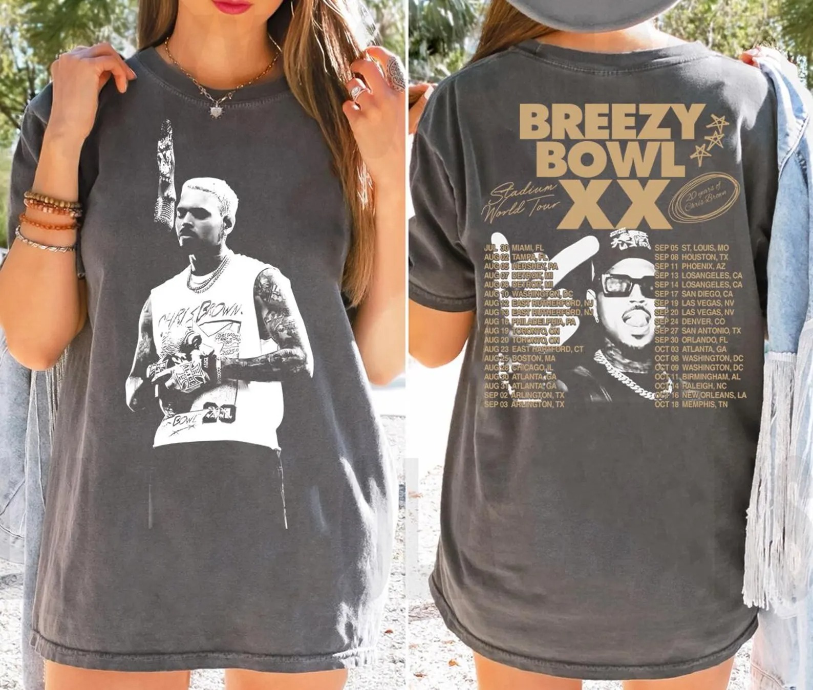 Vintage Chris Brown Breezy Bowl XX Tour 2 Sided Tee, Chris Brown Album Shirt, Chris Brown Fan Gift, Chris Brown Merch Tee, CB Tour 2025 Tee