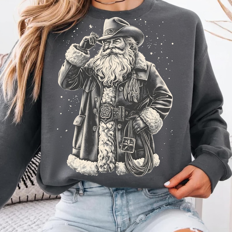 Vintage Cowboy Santa Shirt, Retro Christmas Shirt, Realistic Santa Art Shirt, Classic Holiday Illustration, Festive Christmas Shirt