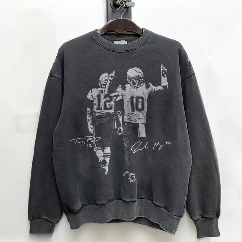 Vintage Drake Maye & Tom With New England Football Player Signature Shirt