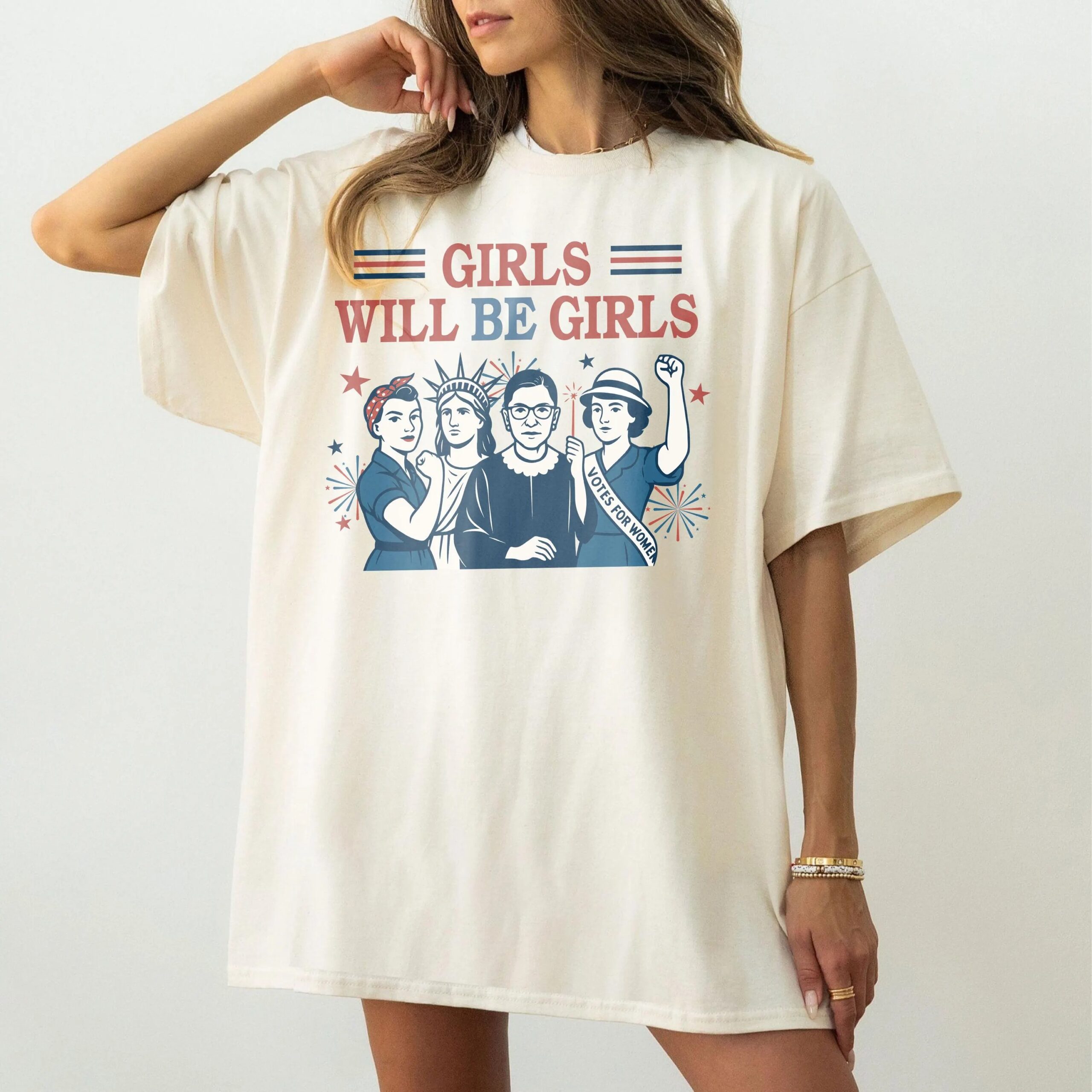 Vintage Girls Will Be Girls Feminism shirt, Greek God Graphic Tee, Feminism Shirt, Strong American Women T-Shirt, Independence Day