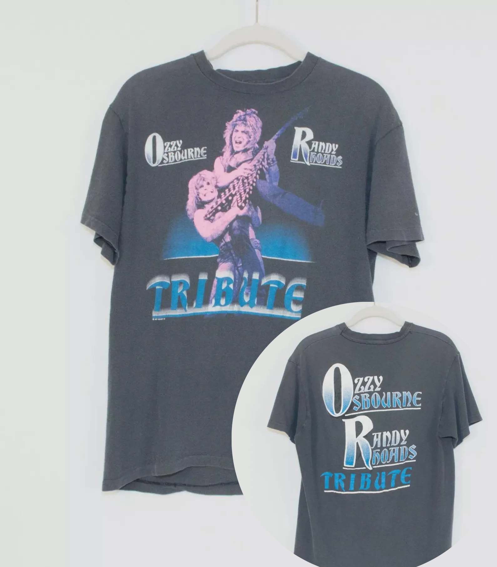 Vintage Graphic 1987 Ozzy Osbourne Randy Rhoads Tribute T-Shirt Double Sides