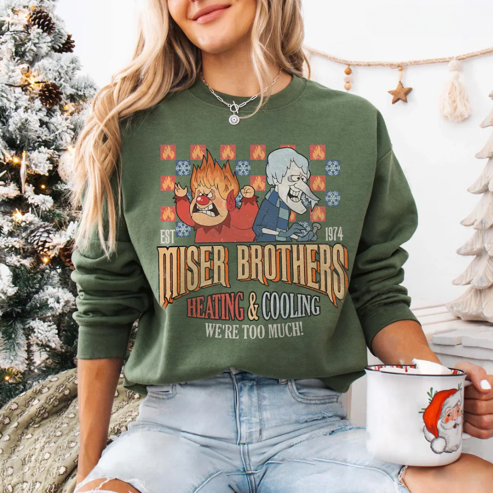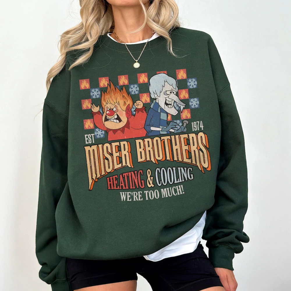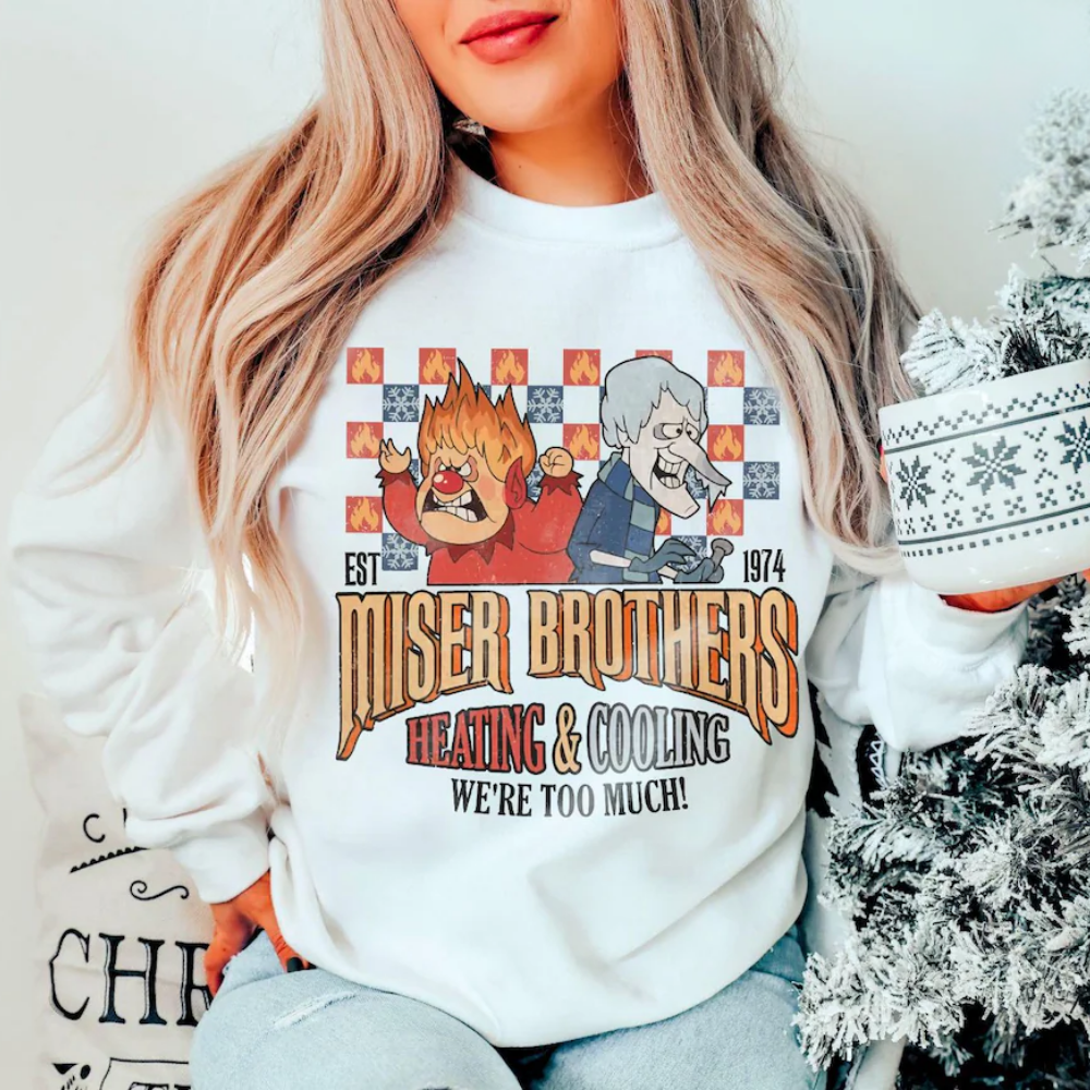Vintage Heating and Cooling We Are Too Much Sweatshirt, Miser Brothers Heating And Cooling Shirt, The Year Without A Santa Claus T-Shirt