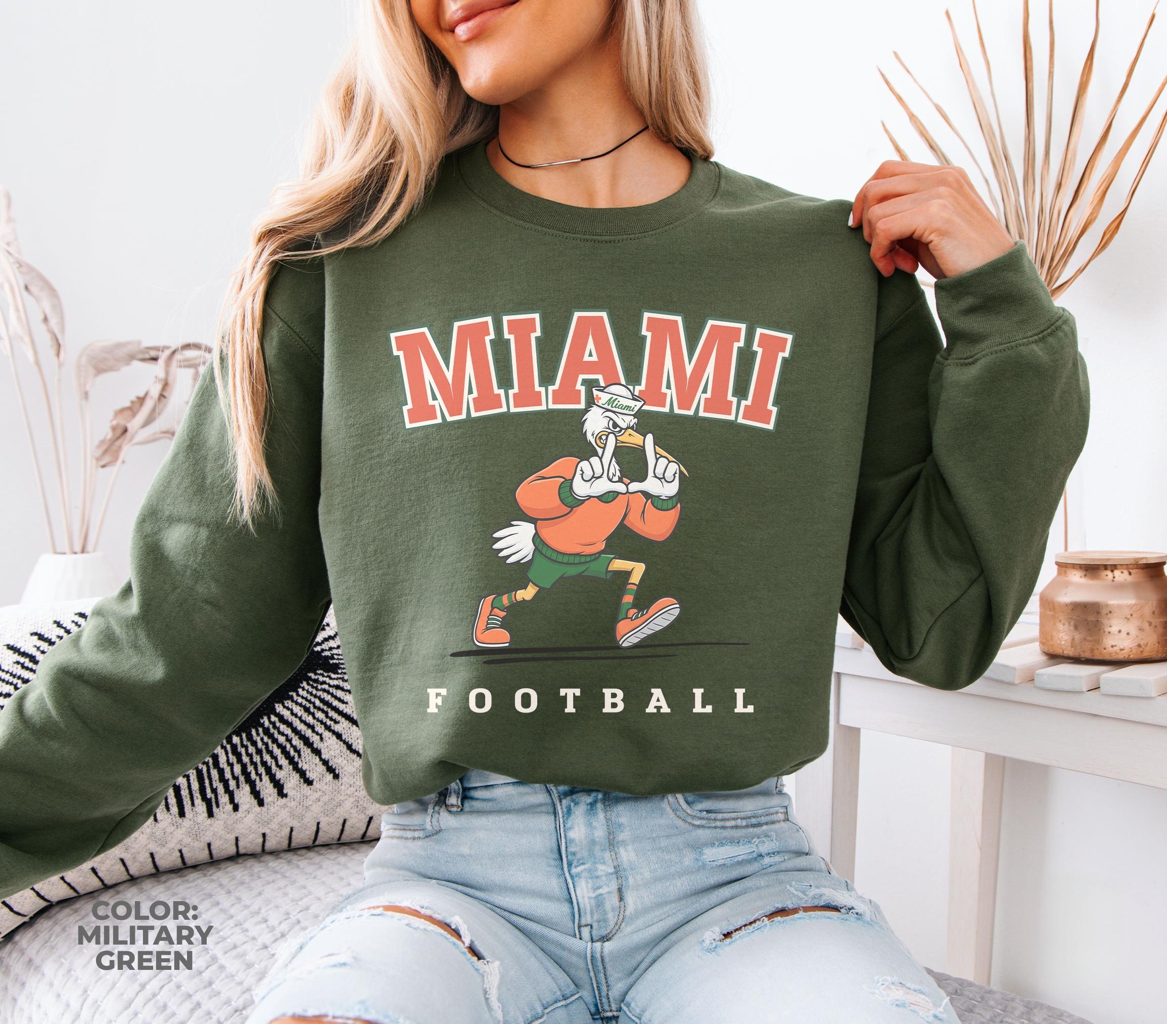 Vintage Miami Canes Football Shirt, Miami Mascot Sweatshirt, Miami Football Crewneck Tee, University of Miami Game Day Hoodie, Hurricanes