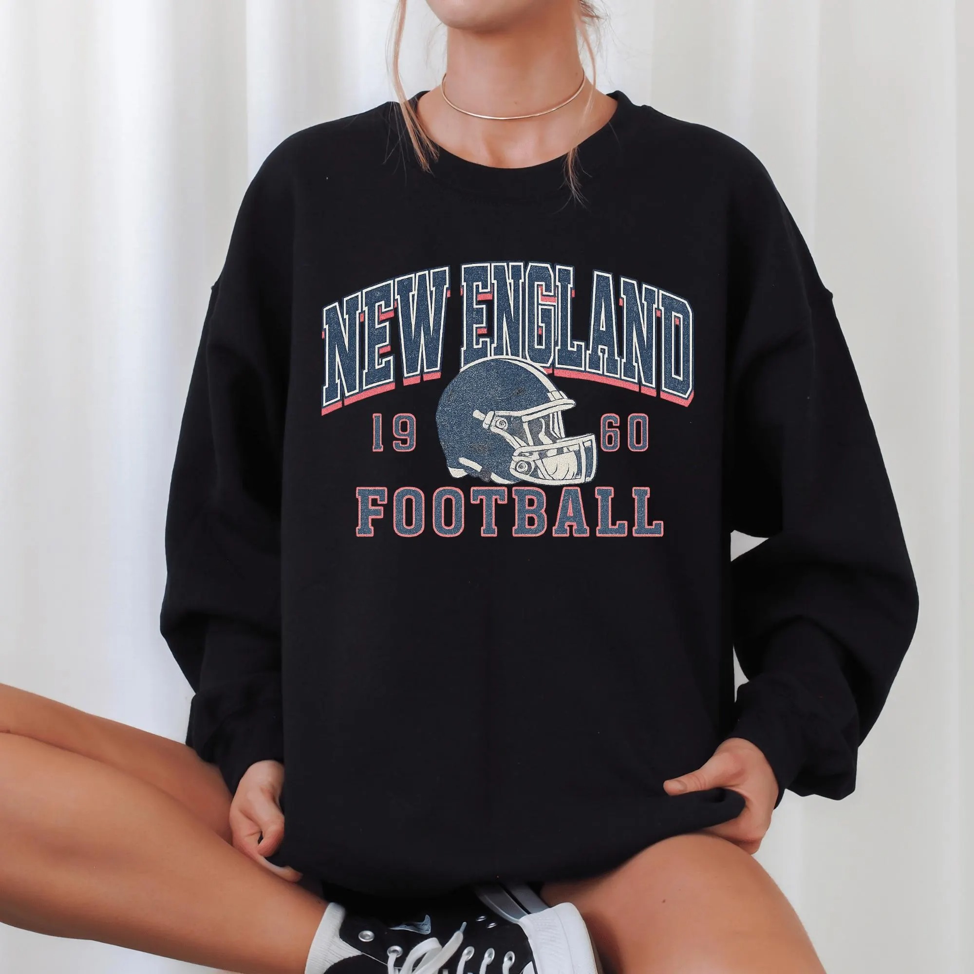 Vintage New England Football T-Shirt, Sweatshirt and Hoodie, Distressed 1960 Game Day Sweater, Retro Varsity Sports Crewneck