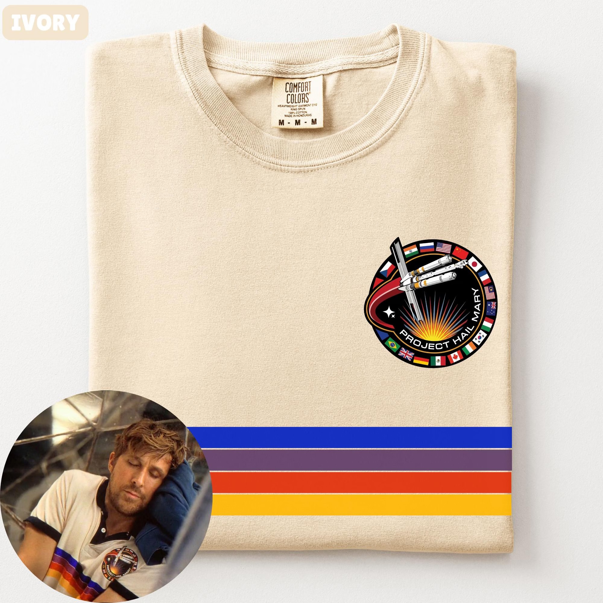 Be the first to review “Vintage Ryan Gosling Rainbow Shirt, Project Hail Mary Graphic Tee, Retro Dr Grace Mission Tshirt”
