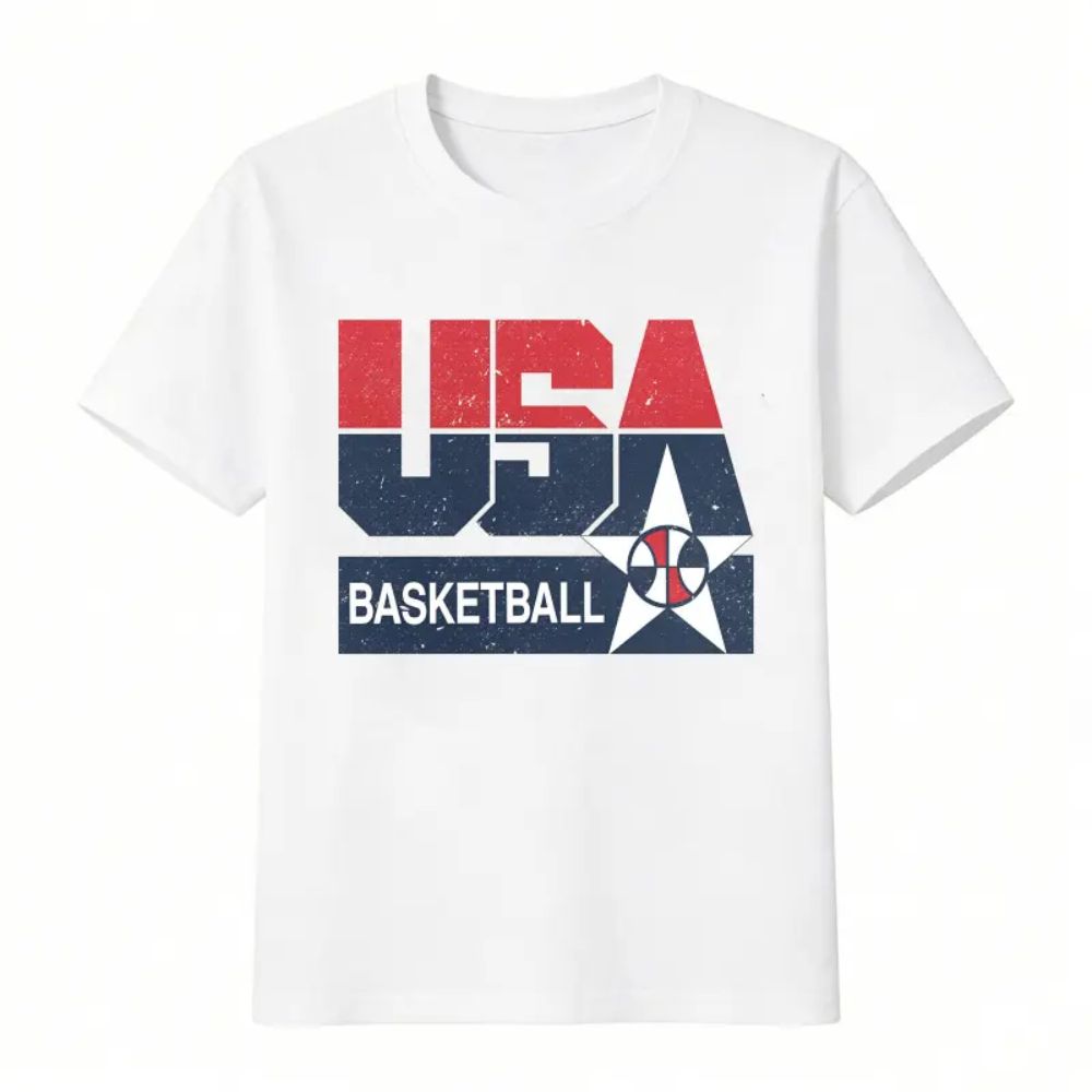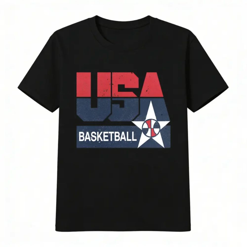 Vintage USA Basketball T-Shirt Retro Graphic Tee Men Summer Cotton Streetwear