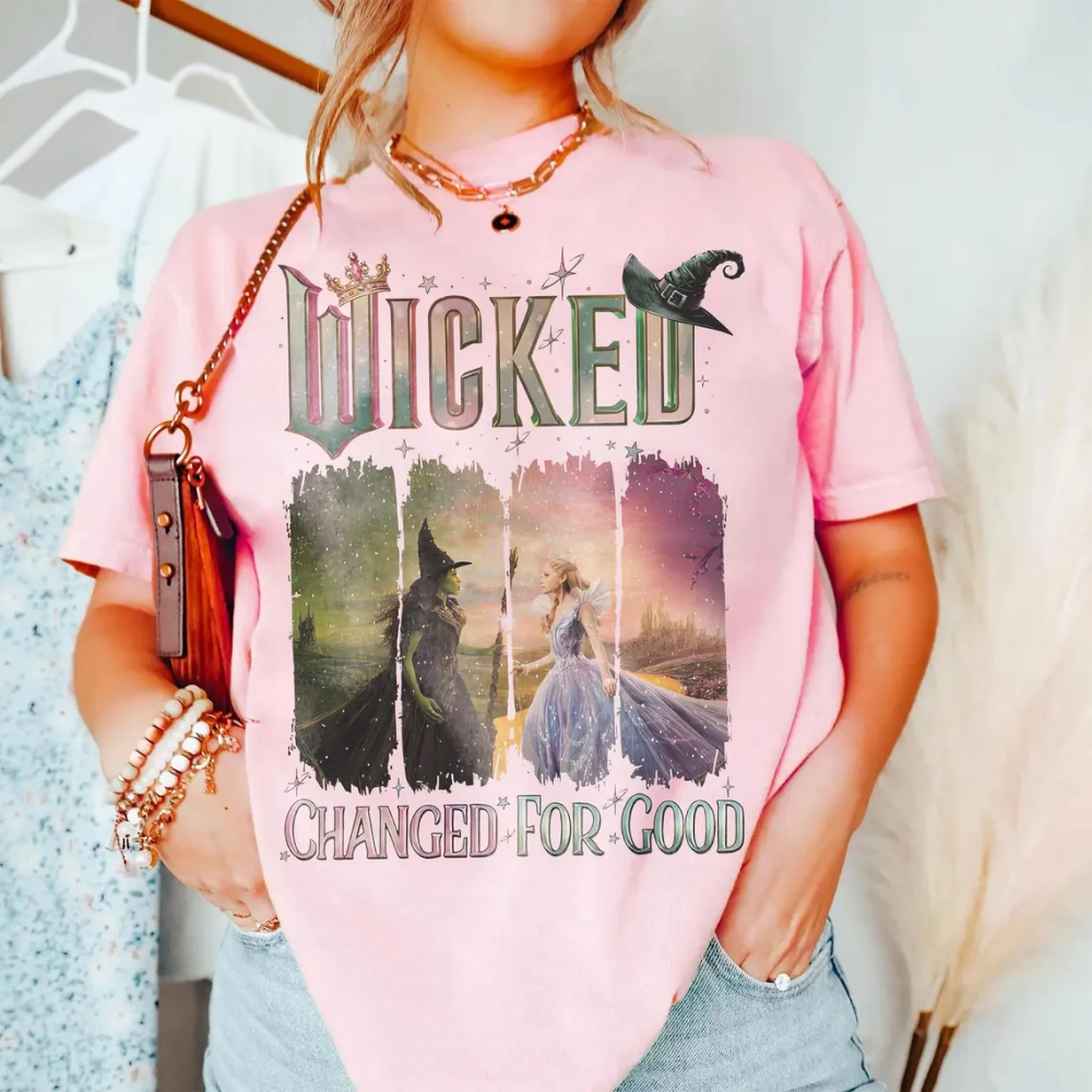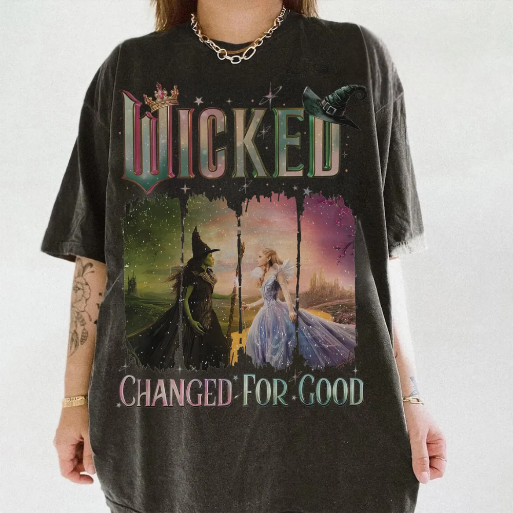 Vintage Wicked Changed For Good T-Shirt, Defy Gravity Broomstick Magic Wand, Wizard Movie Fan Shirt, Wicked Musical Fan Gifts