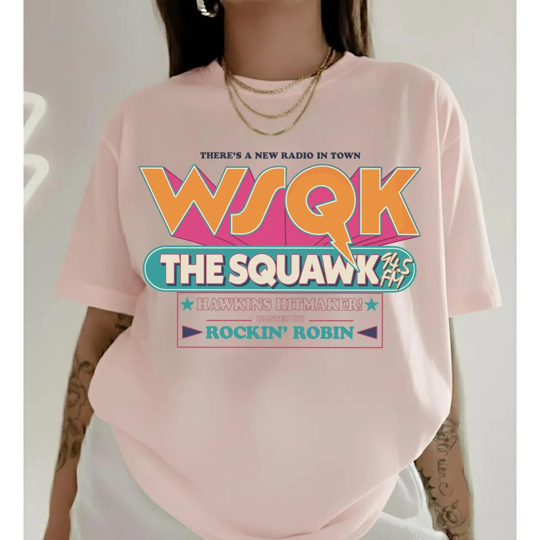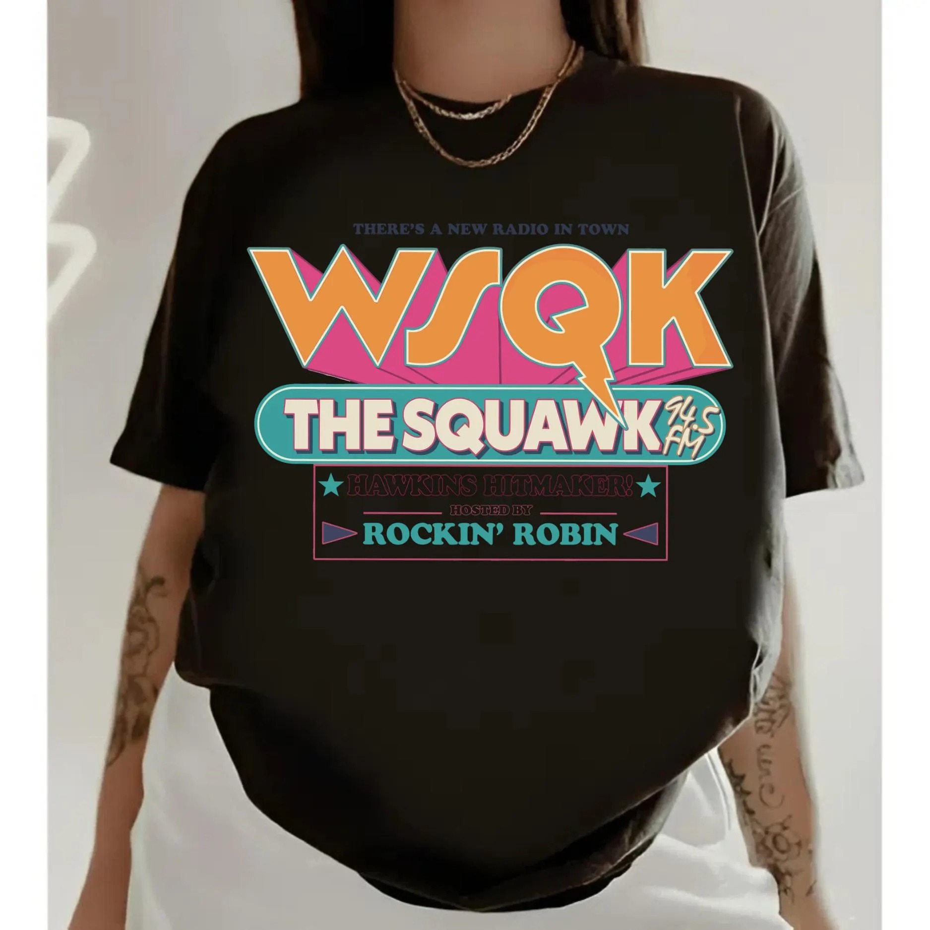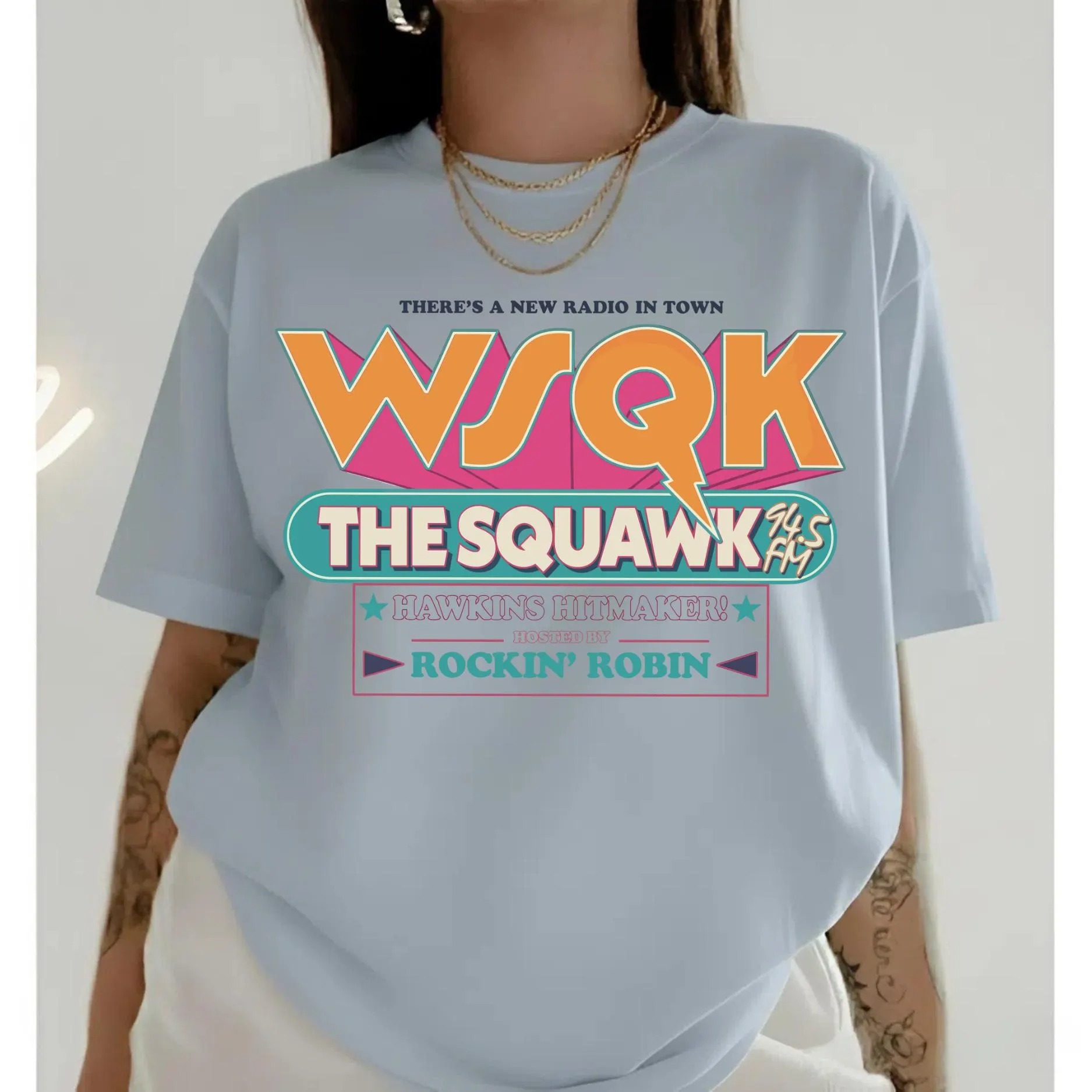 Vintage WSQK Radio Station Sweatshirt, Hawkins Indiana Shirt, 1983 Hawkins Graphic Crewneck, Sci-Fi Stranger Things Gift Unisex For Fan
