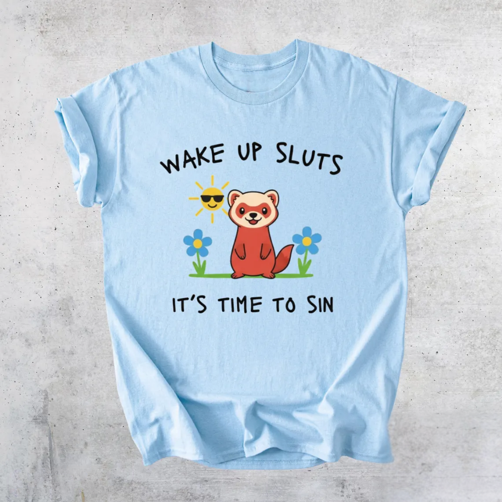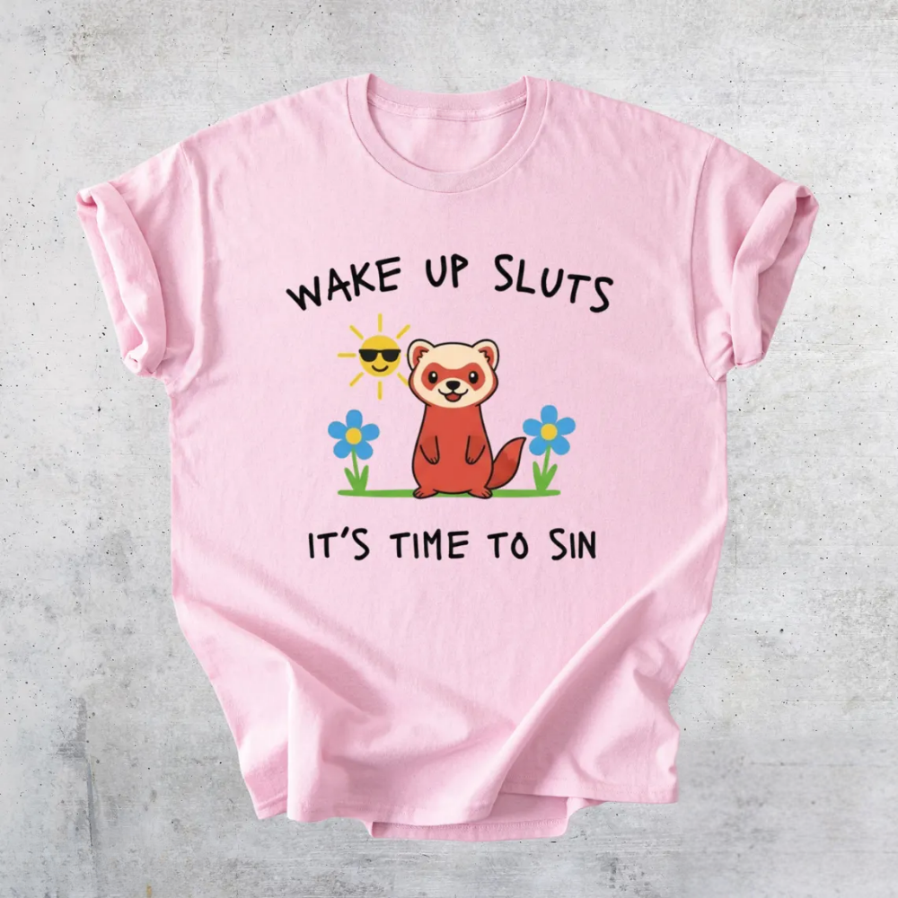 Wake Up Sluts Sweatshirt, Funny Animal Tee, Meme Graphic Top, Unhinged Humor Shirt, Sarcastic T-Shirt, Cursed Tee, Viral Tshirt
