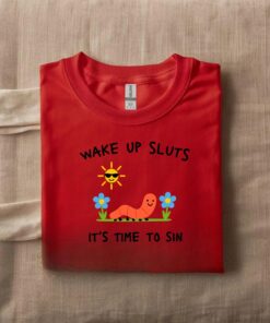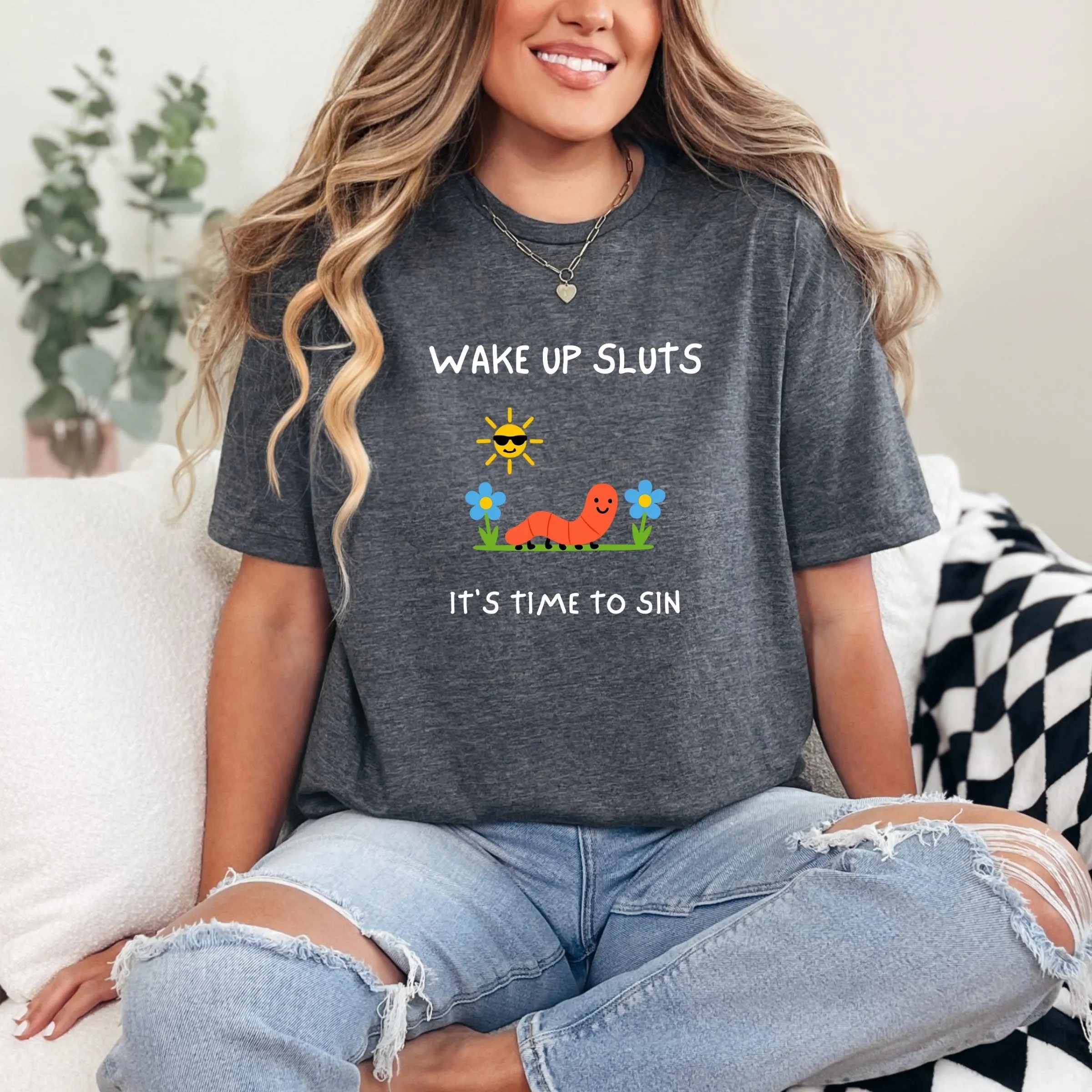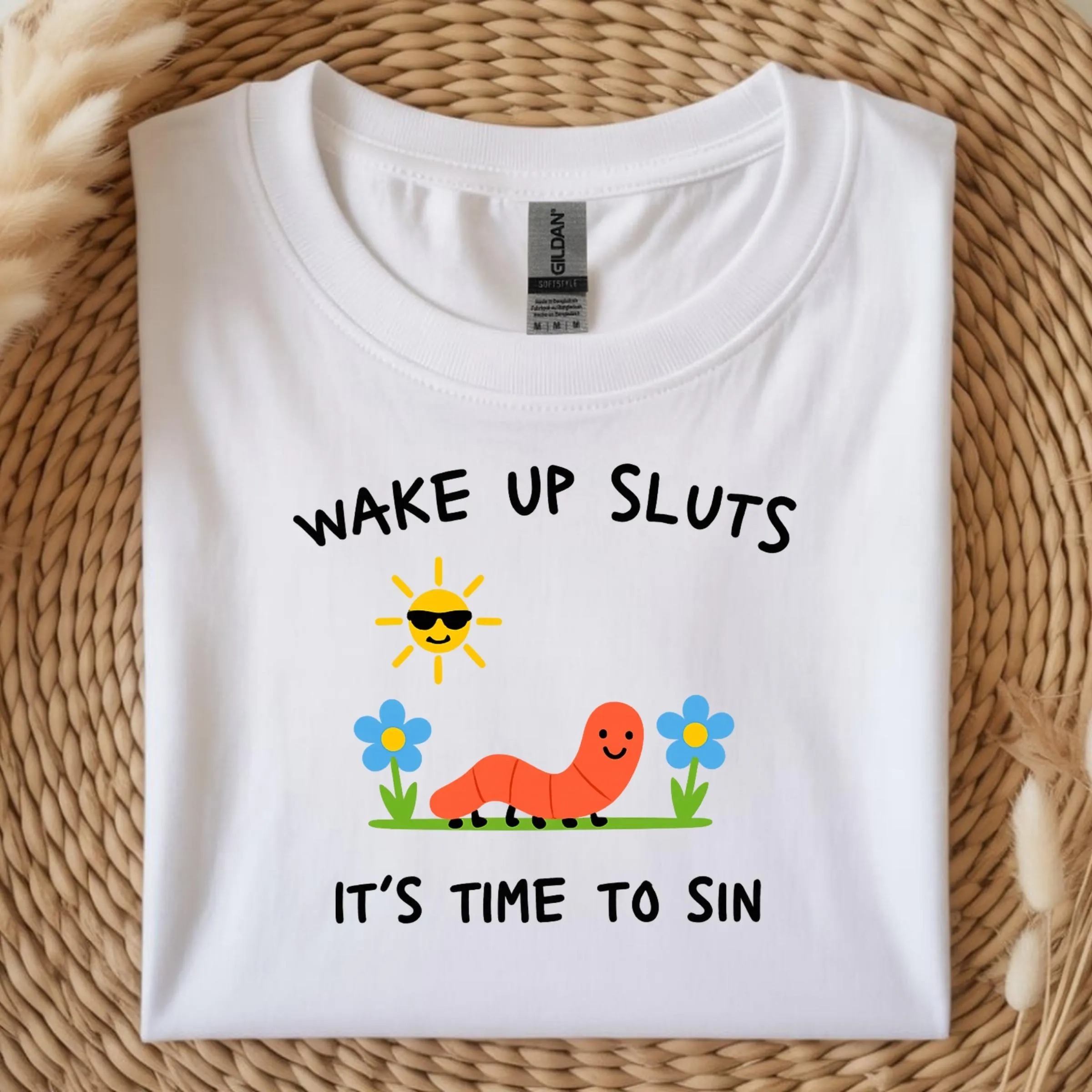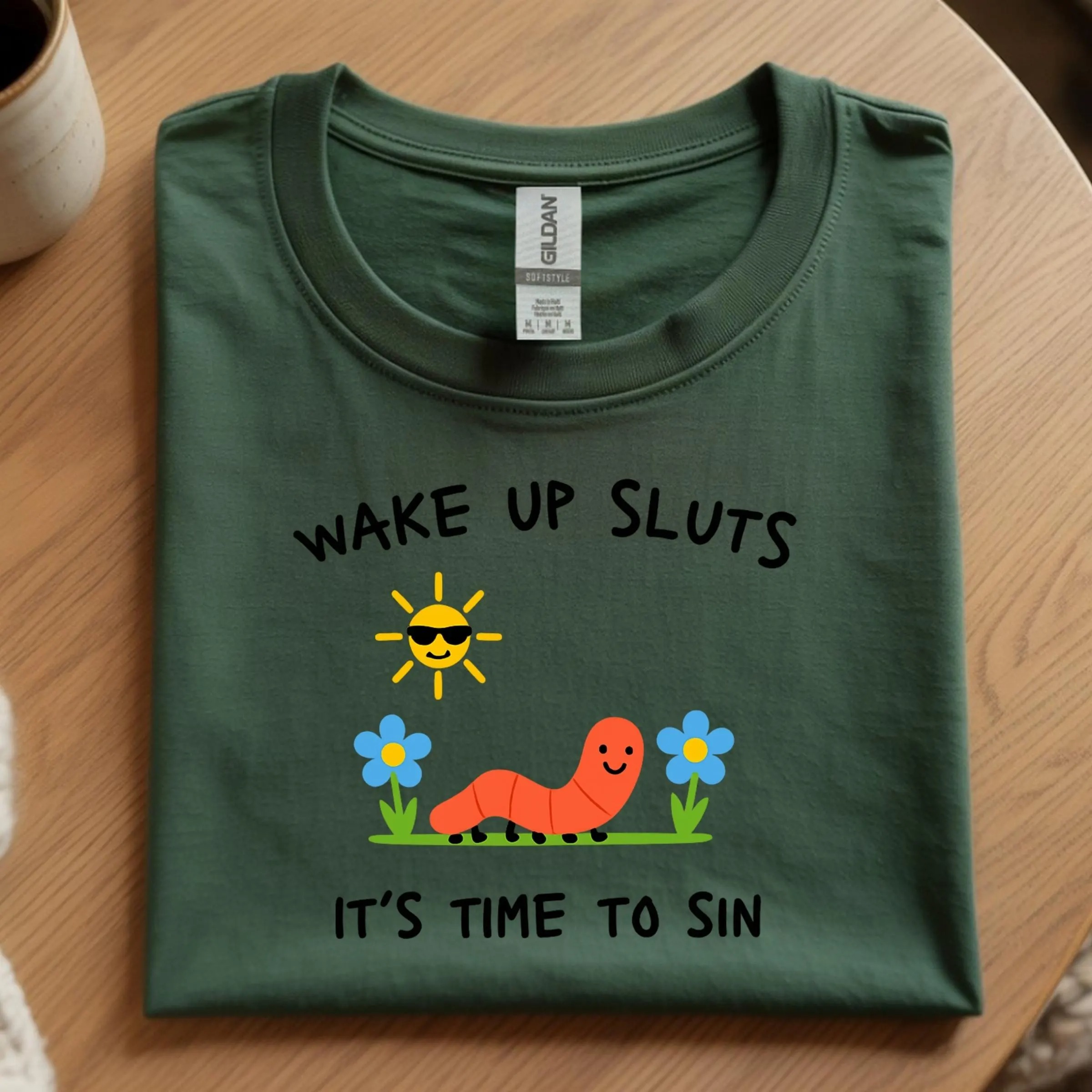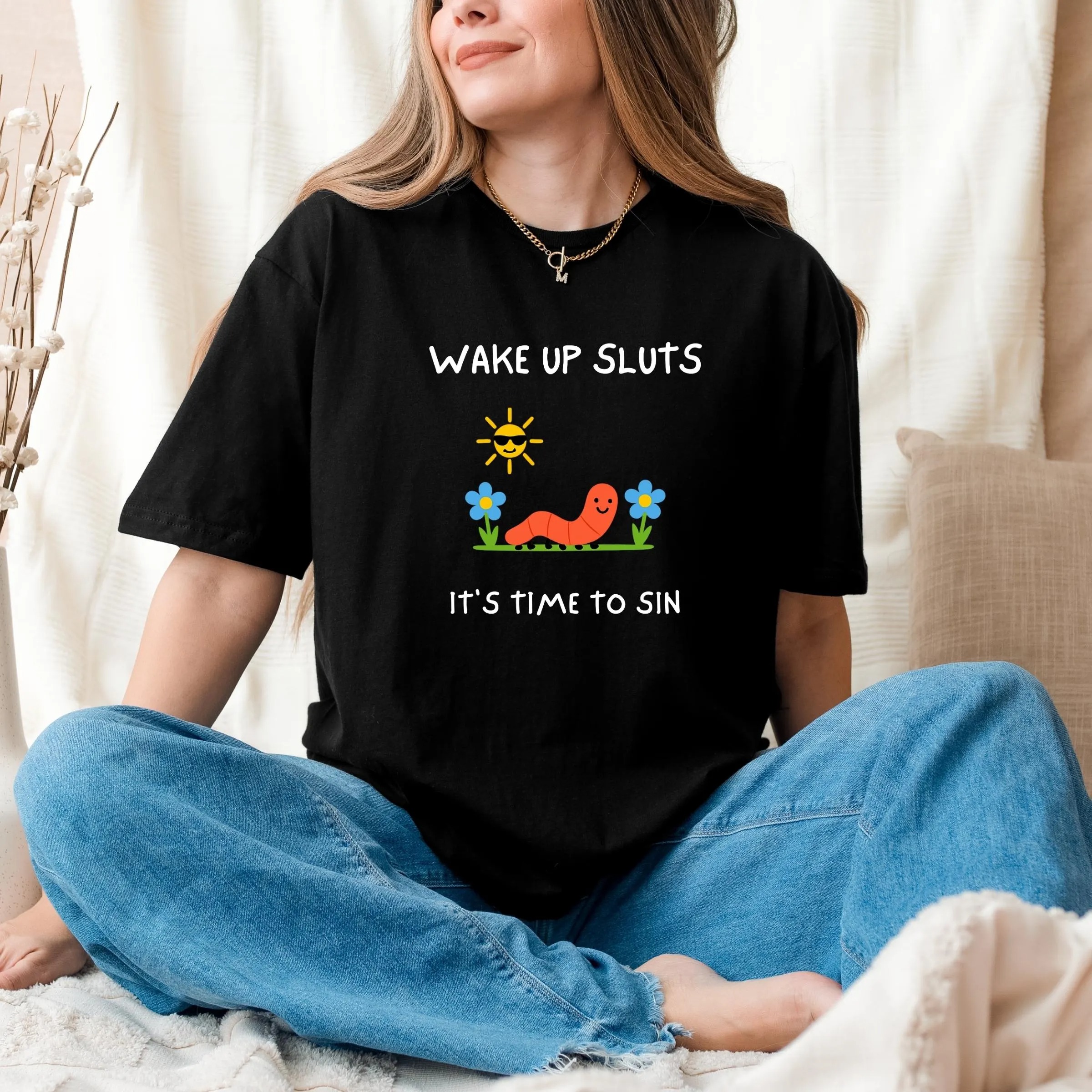 Wake Up Sluts T-Shirt, Funny Animal Shirt, Meme Graphic Tee, Sarcastic Shirts, Cursed Tshirt, Unhinged Humor Top