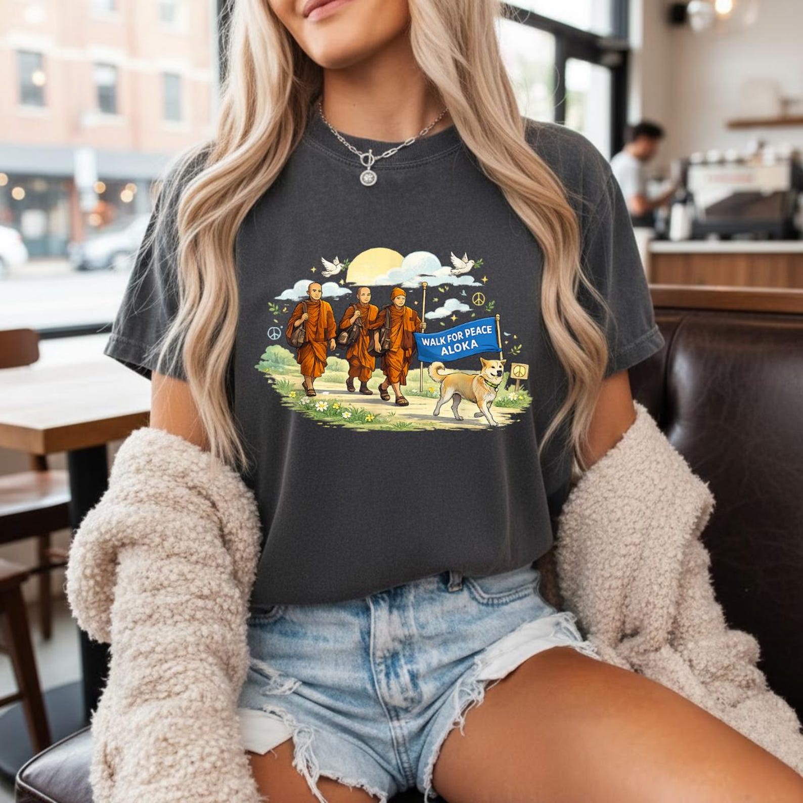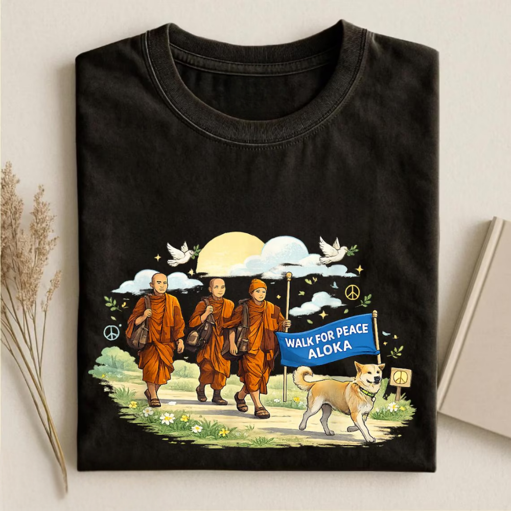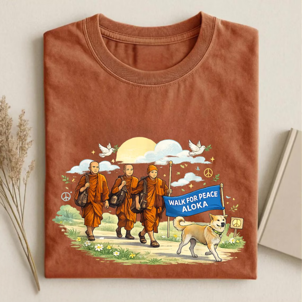 Walk for Peace Monks with Aloka Dog T-Shirt