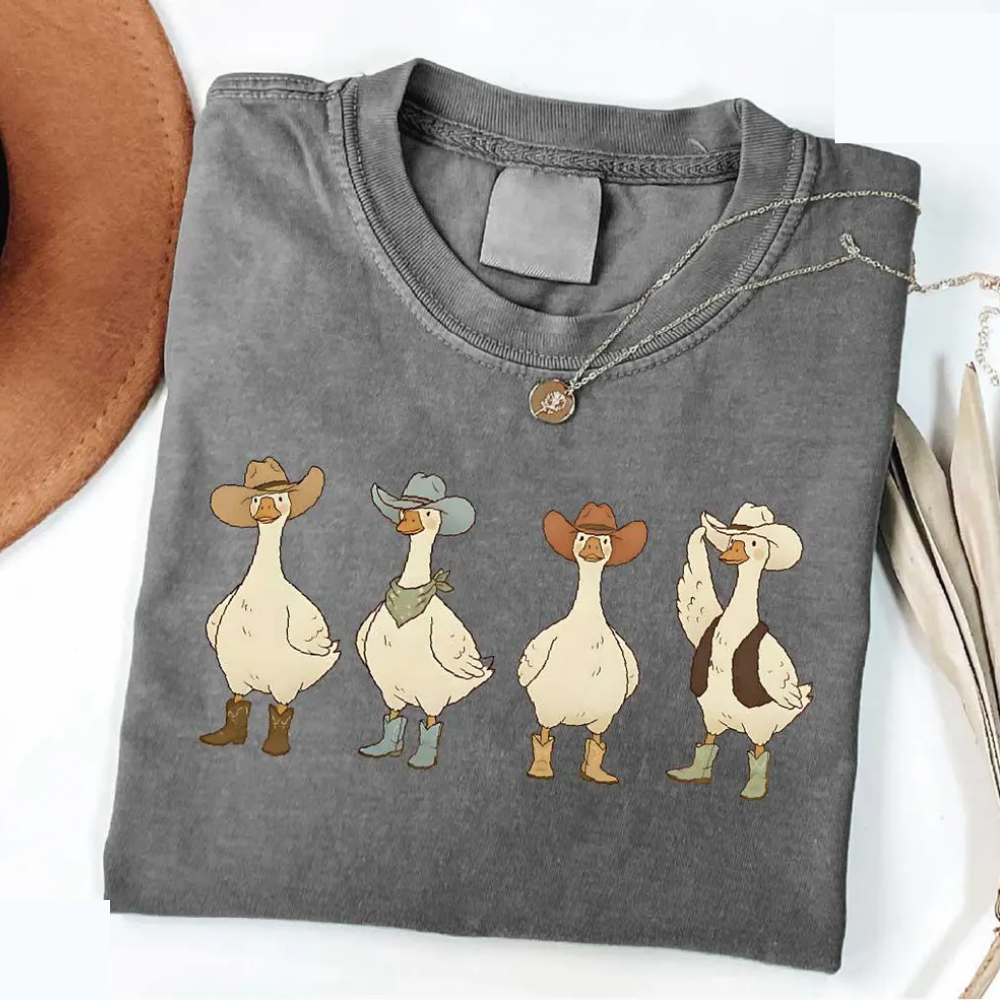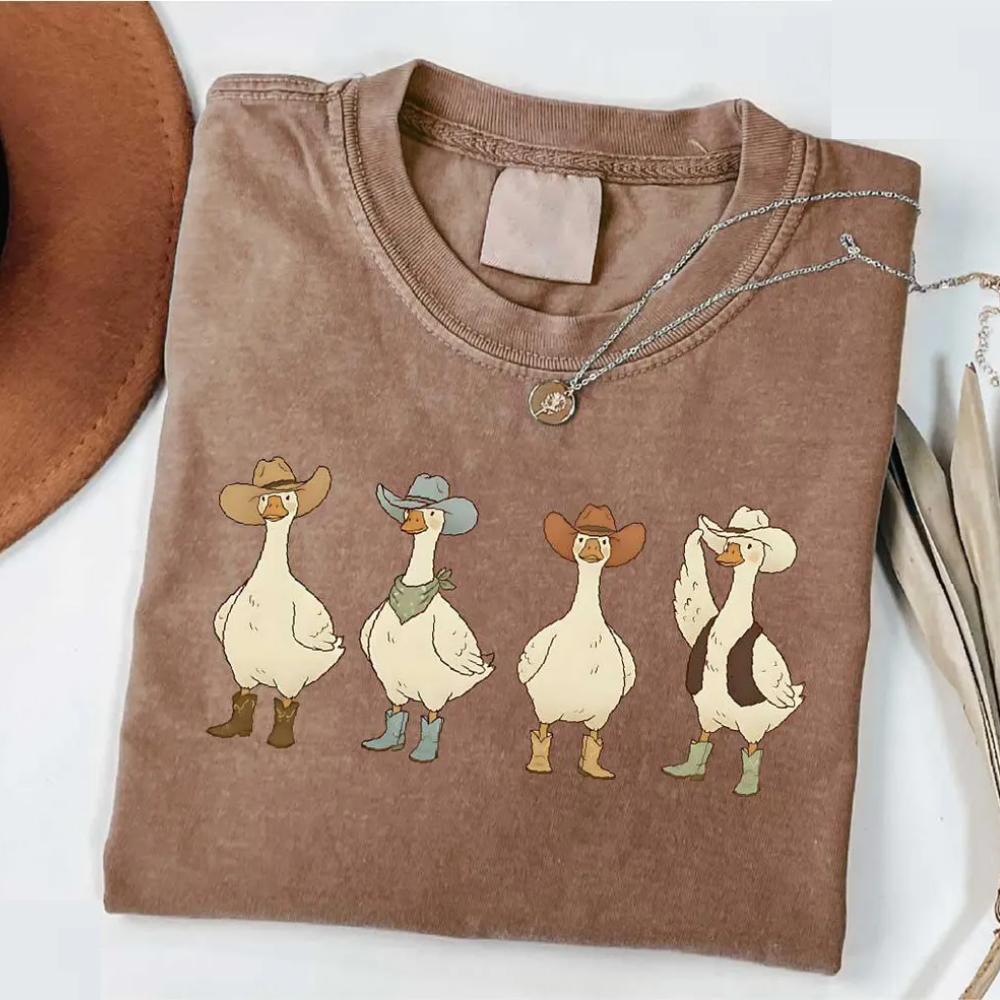 Western Goose Shirt, Cowboy Hat Graphic Tee, Funny Wild West Animal Top, Rodeo Southern Tshirt