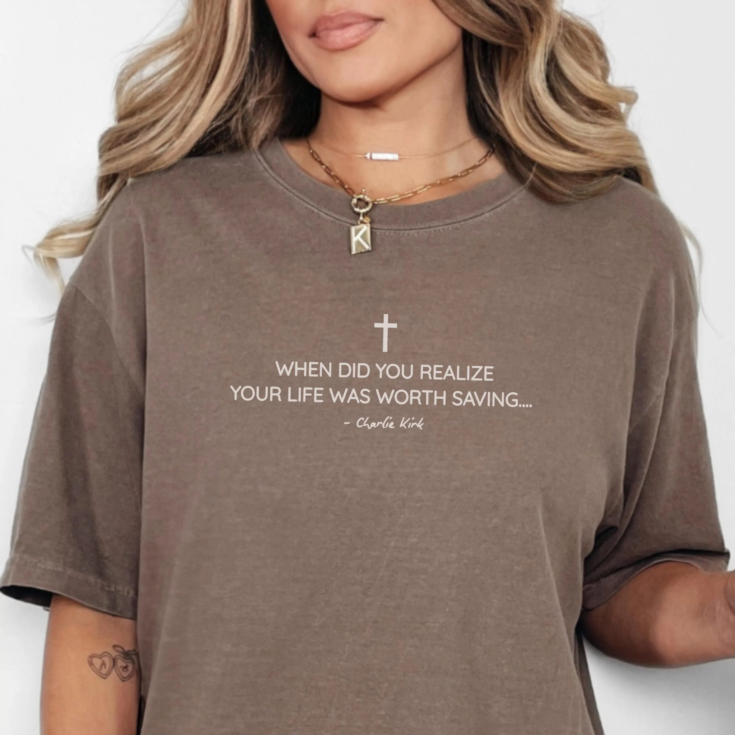 When Did You Realize Your Life Was Worth Saving Shirt | Christian Unisex T-Shirt | Charlie Kirk Top | Faith Quote Tee