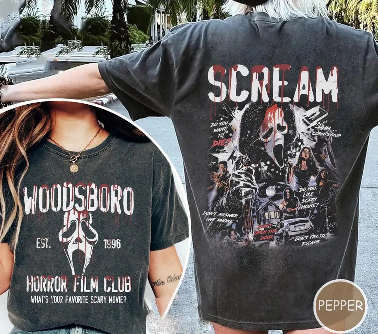 Woodsboro Scream Two-sided Sweatshirt, Vintage Woodsboro Film Club hoodie, 90s Scream Ghost Face Shirt Crewneck Sweatshirt