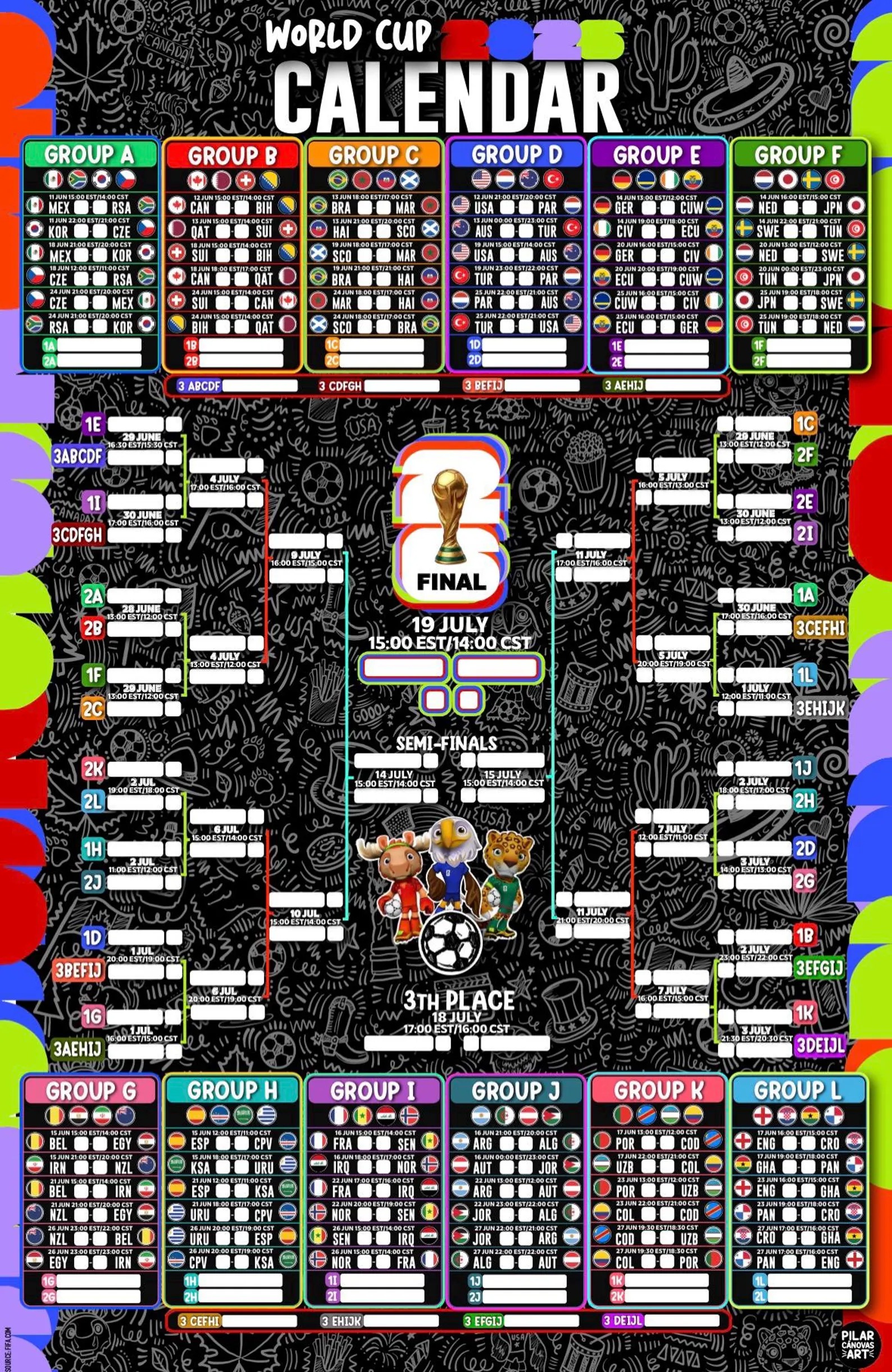 World Cup 2026 Wall Calendar Poster Large Soccer Match Schedule