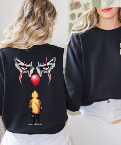 You’ll Float Too Halloween 2 Sided tshirt, Scary Halloween Sweatshirt, Horror Character Sweater, Horror Clown Balloon Shirt