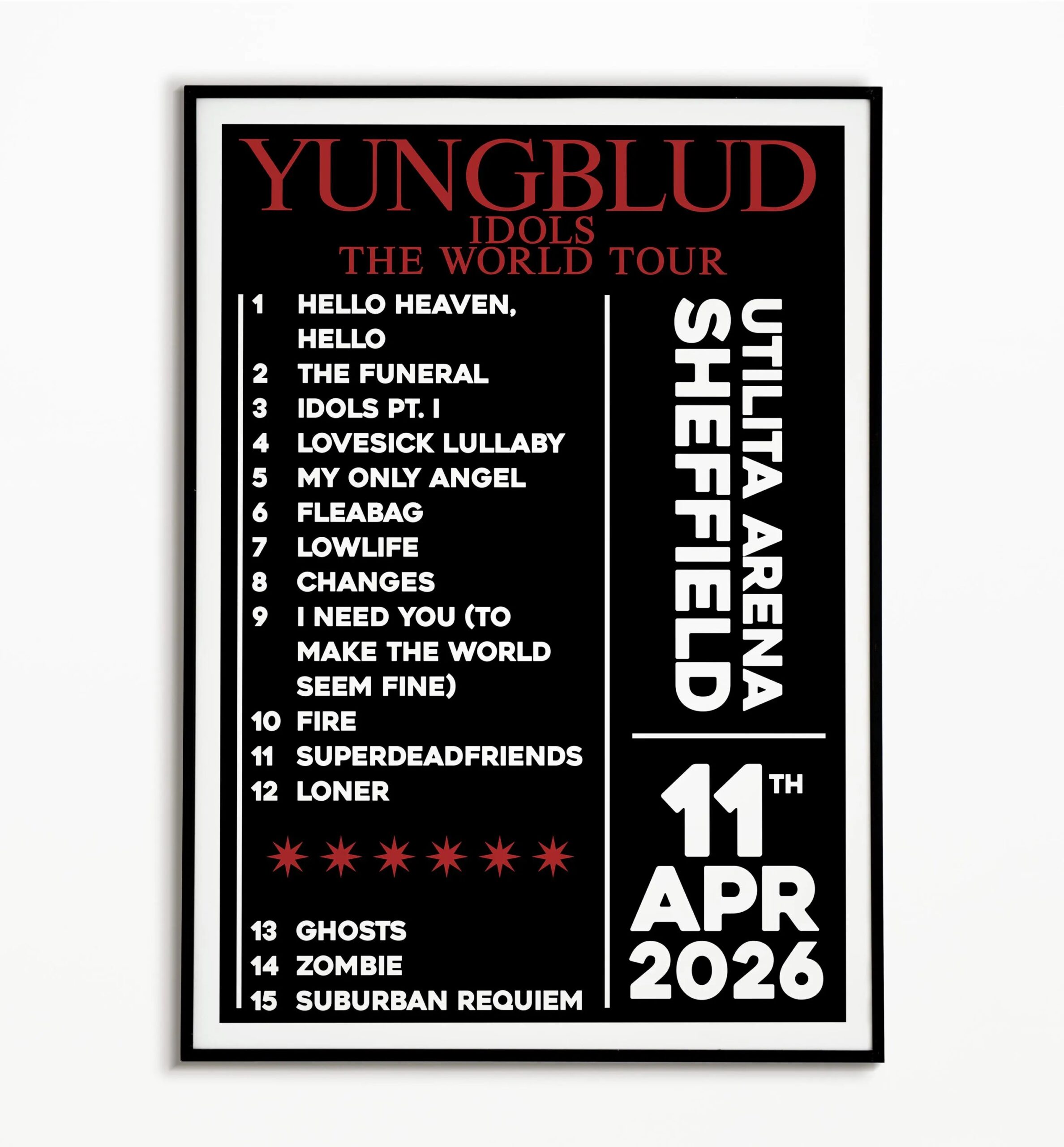 Yungblud Setlist Print 11th April 2026 Sheffield, Indie Rock Concert Poster & Canvas