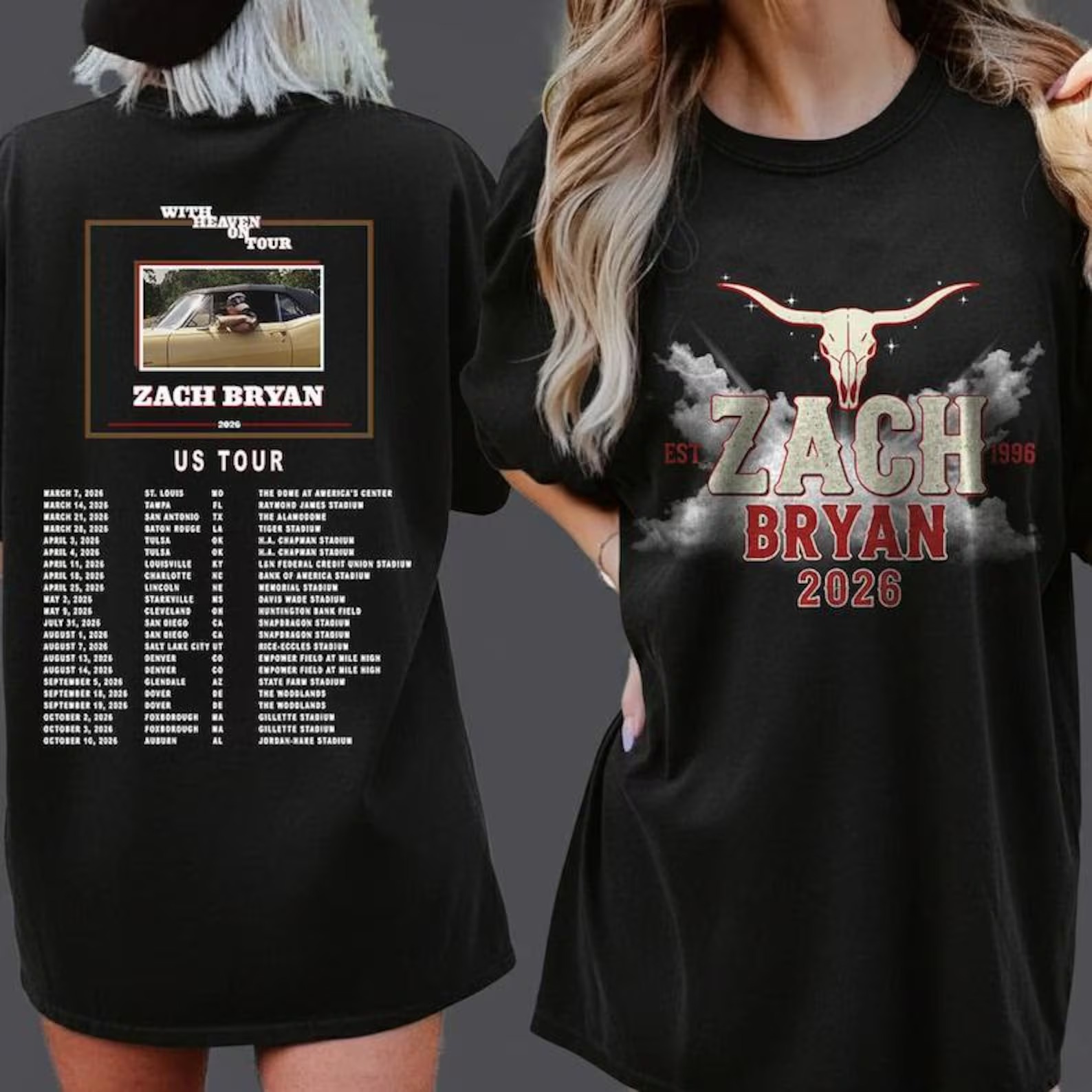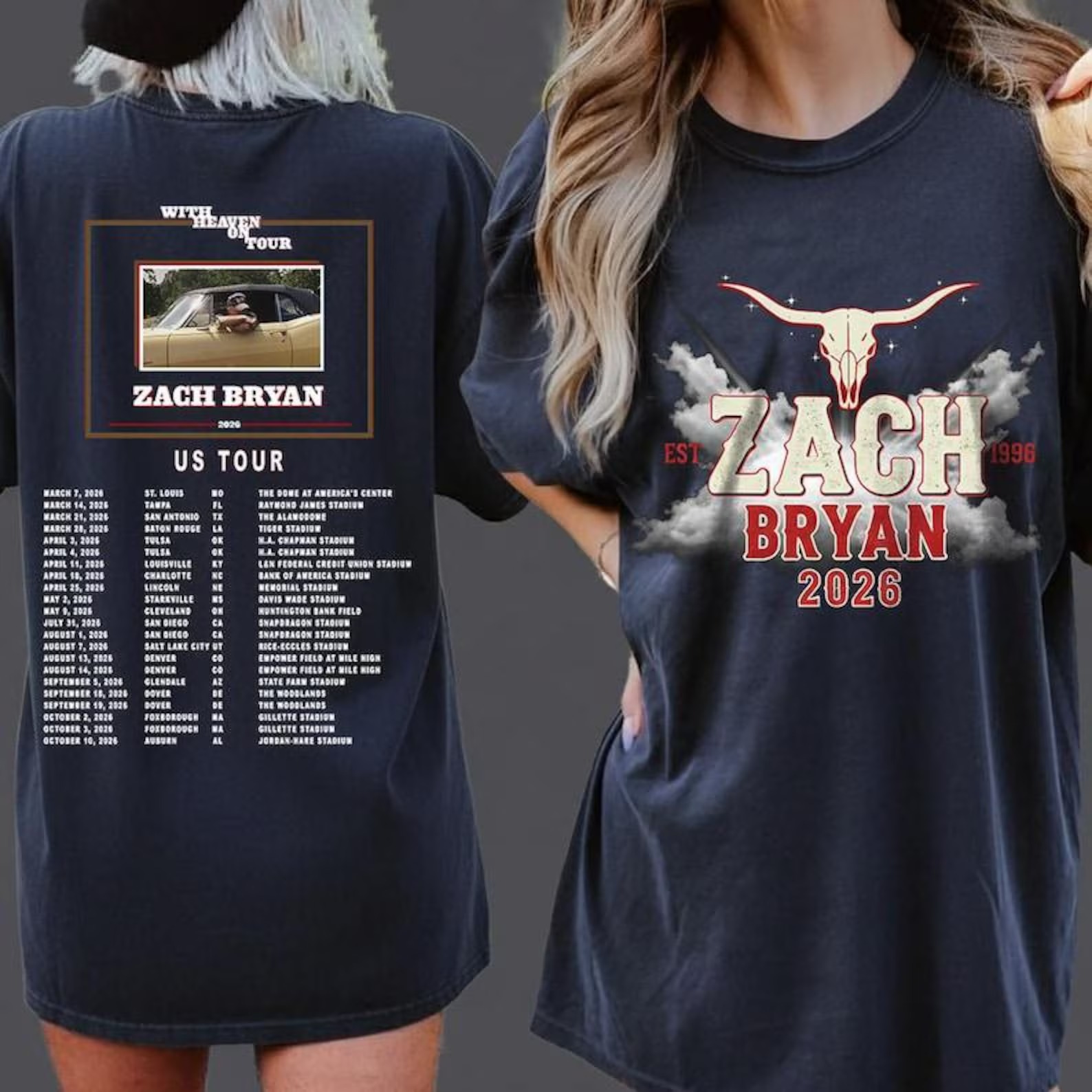 Zach Bryan 2026 Shirt, With Heaven On Tour Vintage Tee, Est 1996 Oklahoma Country , US Tour Dates Concert Merch